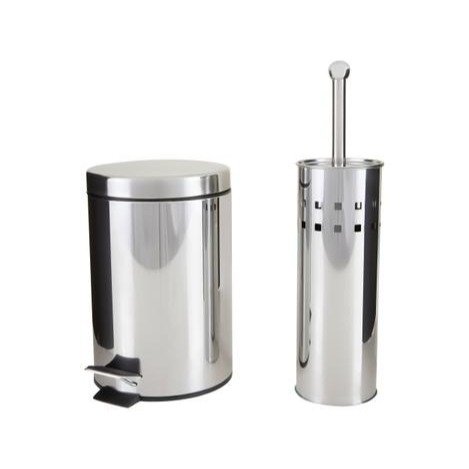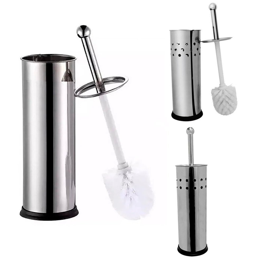 Kit de Banheiro Lixeira de Aço Inox Cesto De Lixo 3 5 Litros 100% C/Pedal + Escova Sanitária Suporte Privada Sanitário
