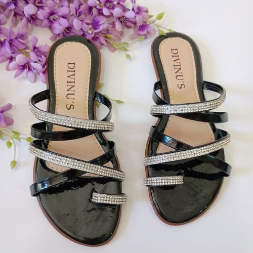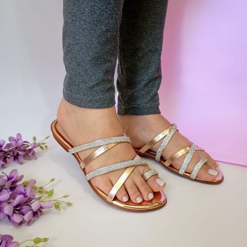 Sandália Rasteira com Pedrarias Finas Tiras Cruzada Toque de Elegância Dia a Dia Casual Chic Macia