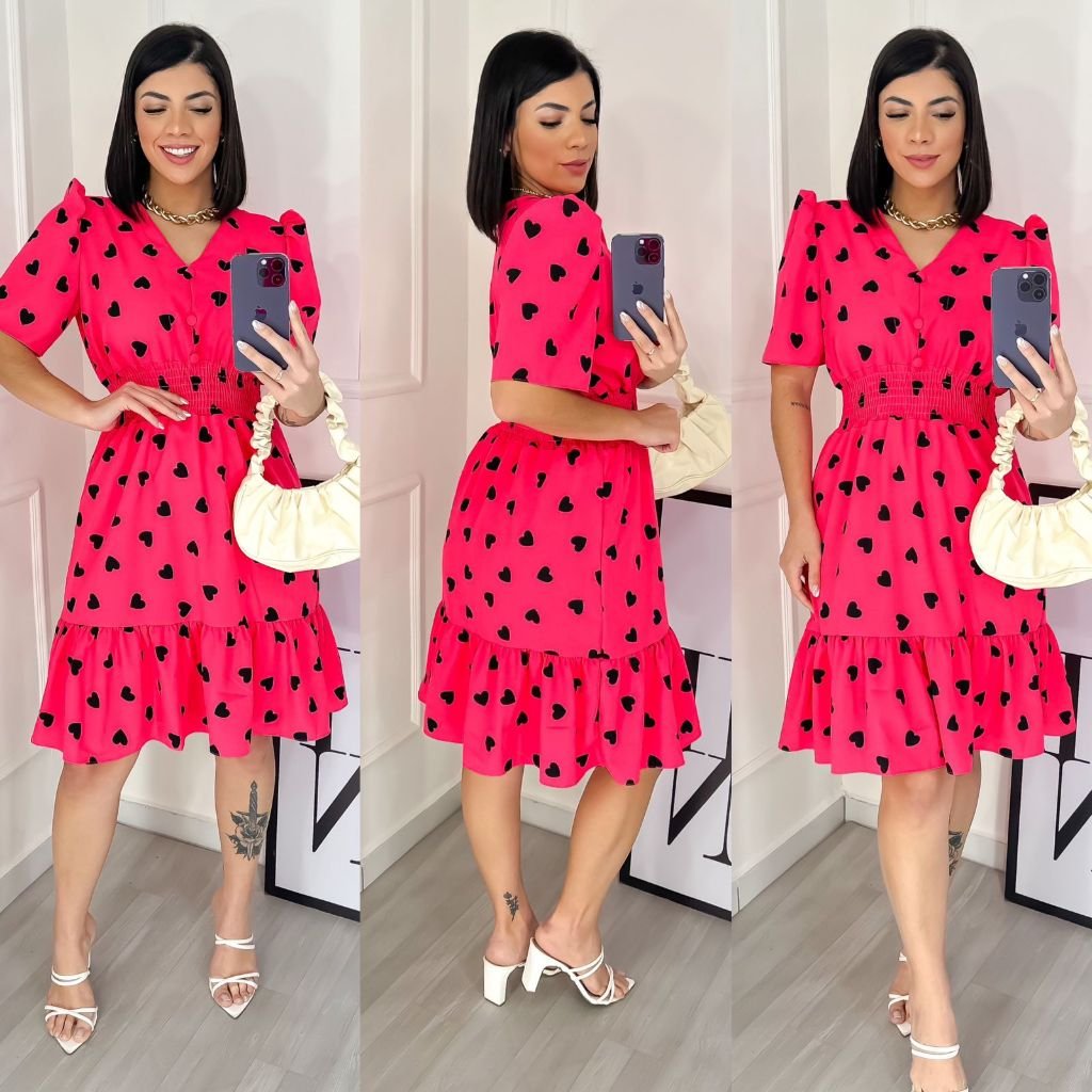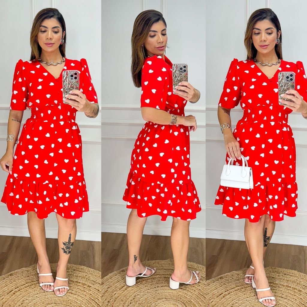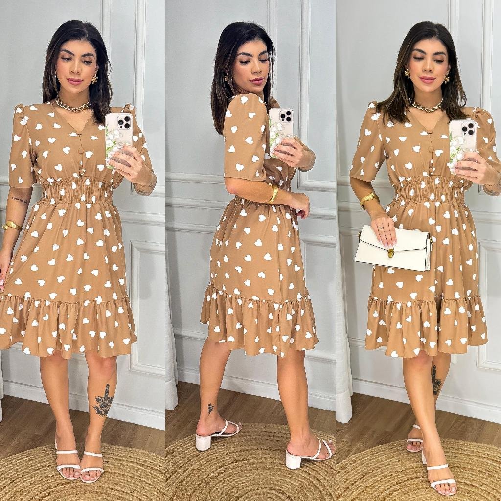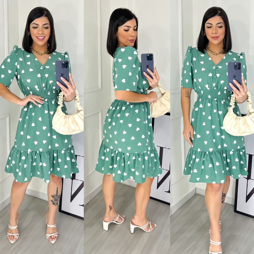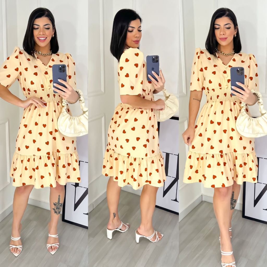 Vestido Feminino Midi Estampado com Elastex / Gola v Aproximadamente: R$63,00